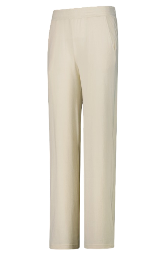 Pantalones largos de pernera ancha para mujer en tejido de punto jaspeado con cintura elástica. Confeccionados en un tejido suave con tacto melocotón, que no requiere planchado, ofrecen una sensación suave.