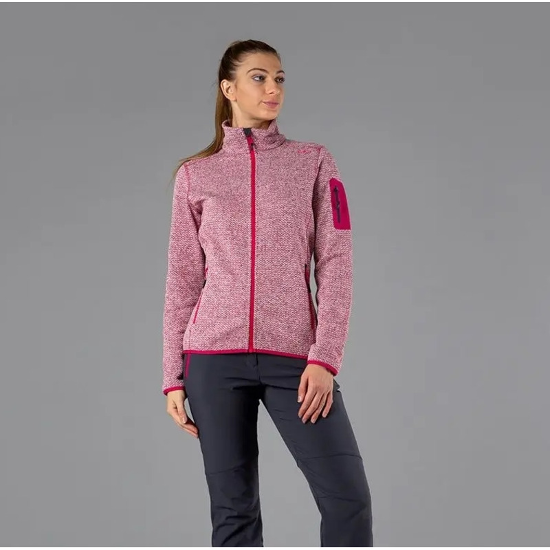 El polar Knit-Tech es una de las prendas icónicas de CMP, resultado de la experimentada tradición de fabricación del grupo Fratelli Campagnolo. El tejido está confeccionado mediante un proceso especial que le da al vellón un efecto de mezcla similar a la lana, para una sensación inconfundible de aire libre. La cremallera frontal cuenta con una solapa interior para mantener el viento fuera y evitar rozaduras. El dobladillo y los puños son elásticos para garantizar un ajuste ceñido al cuerpo, incluso durante los movimientos más dinámicos. Se agregan dos bolsillos laterales con cremallera con un bolsillo aplicado con calor en la manga.