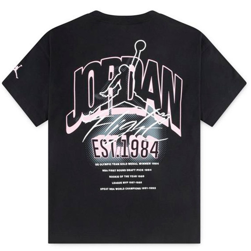 La camiseta Jordan Girls MJ Back Stretch SS Tee "Black" es una pieza destacada en la moda deportiva femenina. Confeccionada con un tejido de mezcla elástica del 60% algodón y 40% poliéster, esta camiseta ofrece un ajuste ceñido pero increíblemente cómodo. Permite libertad total de movimiento y se adapta con suavidad a la forma del cuerpo, gracias a su corte slim fit.